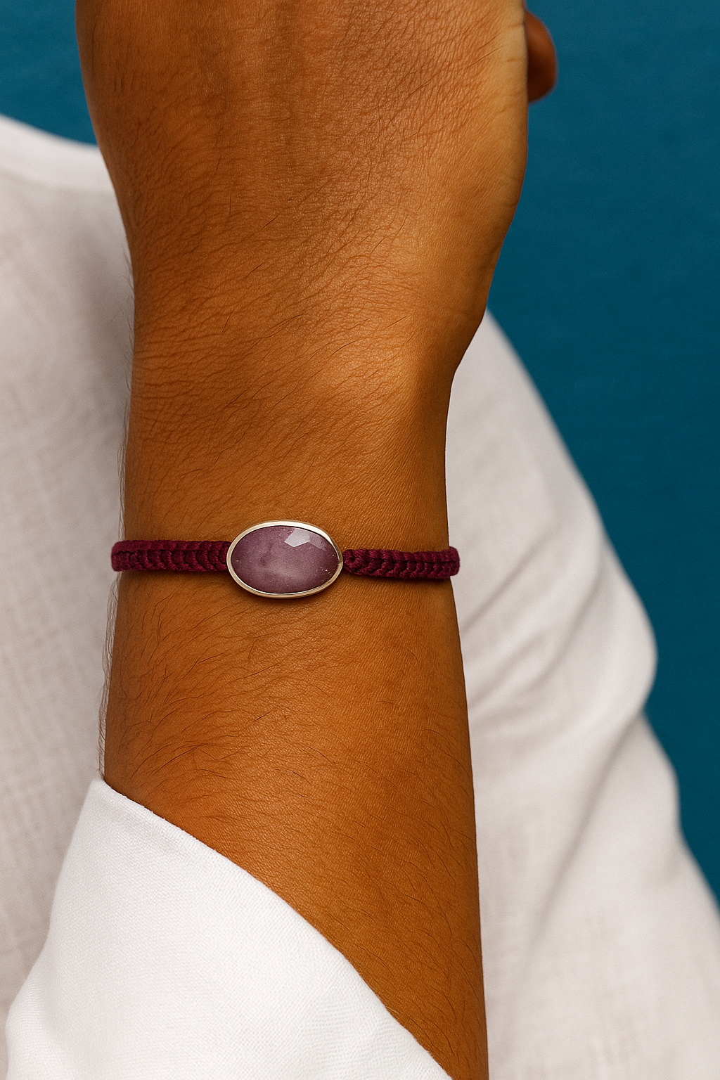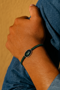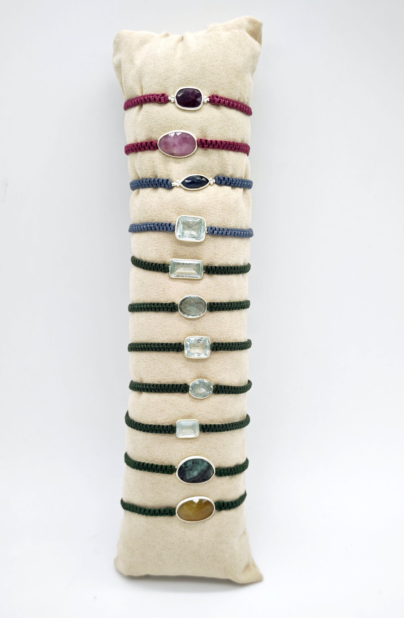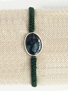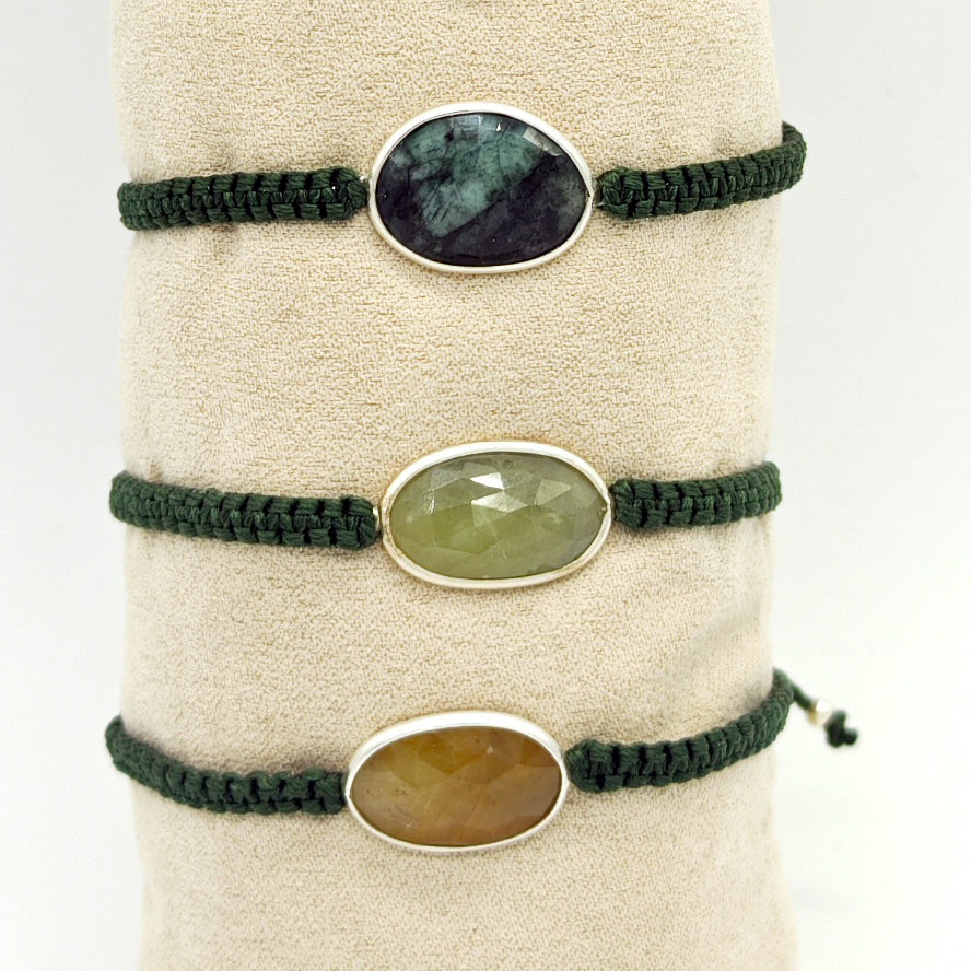 ✳ Pulsera UNISEX de macramé con una piedra preciosa central montada en plata. Para este modelo usamos Zafiro azul, zafiro amarillo, Rubí o Esmeralda en bruto, sin pulir. Siempre hay que tener en cuenta que al ser piedras naturales el tono puede variar de unas a otras.